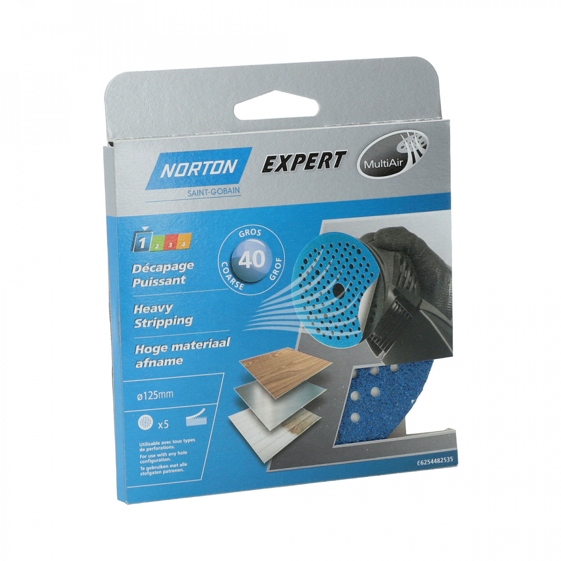 A Norton Multi-Air H835 kiváló minőségű csiszolókorongok speciális cirkónium-szemcsés szemcsékkel, extra erős papír hordozóval és 181 porlyukkal a maximális porelszíváshoz. A Sharp NorZon szemcsék könnyedén lecsiszolják a régi festékrétegeket, a glettet, gittet és a sima éles széleket, a nyitott bevonat pedig segít megelőzni az eltömődést.A nagy szilárdságú E-súlyú papír hátlapja szakadásálló, és jelentősen csökkenti az olyan gyakori problémákat, mint a hullámosodás és az élek letöredezése Megfelelő Multi-Air hátlappal célszerű használni.
