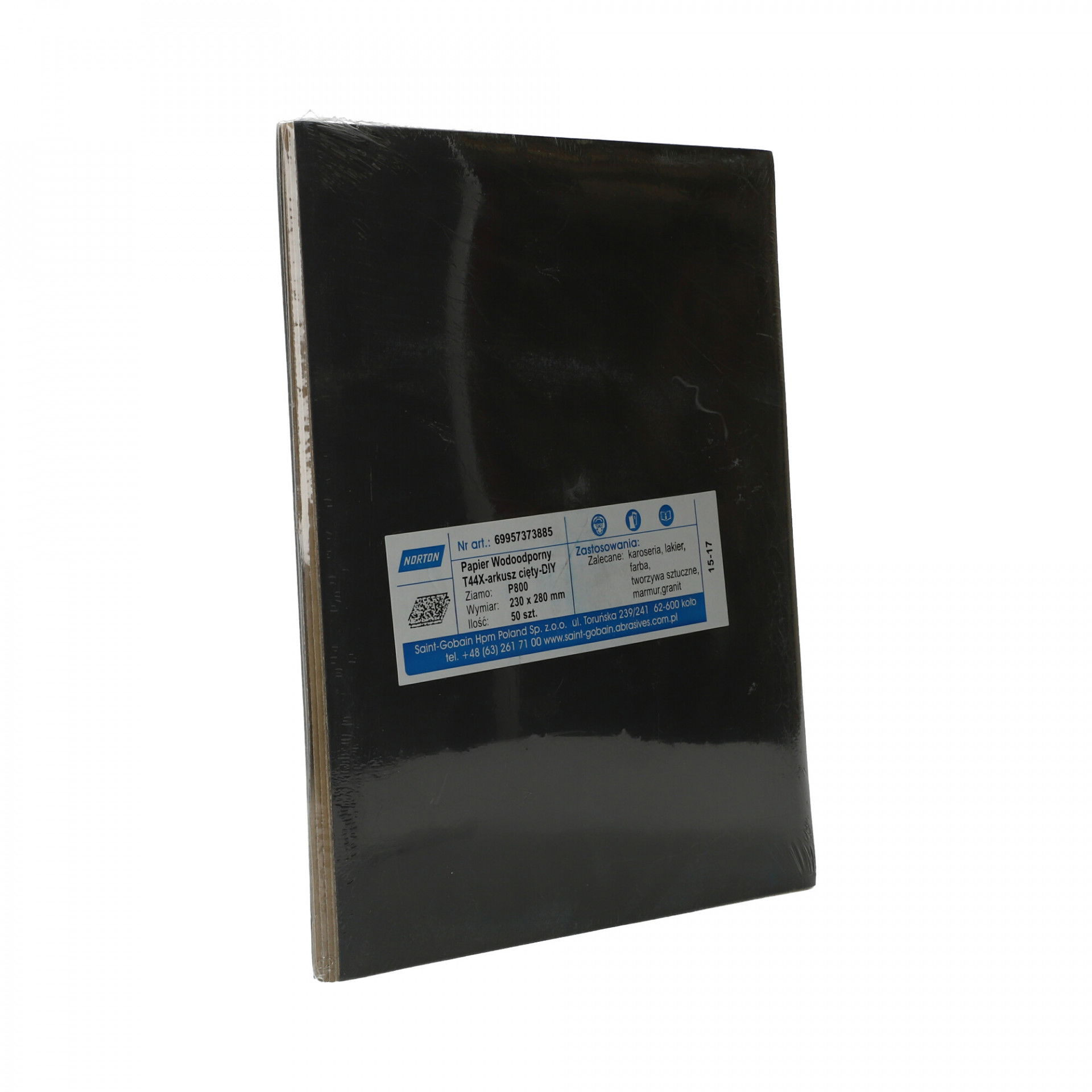 A Norton T44X vízálló csiszolópapír nagy teljesítményű szilíciumkarbid szemcsével nedves vagy száraz használatra alkalmas, nedves használat esetén tisztább felületet biztosít csiszolás közben. Gyors anyageltávolítás és simább és fényesebb felület elérése, ideális lakkozott felületeken való használatra és fémekhez. Festék- és lakkburkolatok, műanyagok, vas- és színesfémek csiszolására, polírozására is szolgál. Használható önmagában, csiszolótömbbel, kapcsos rögzítésű elektromos vagy akkumulátoros csiszológéppel.